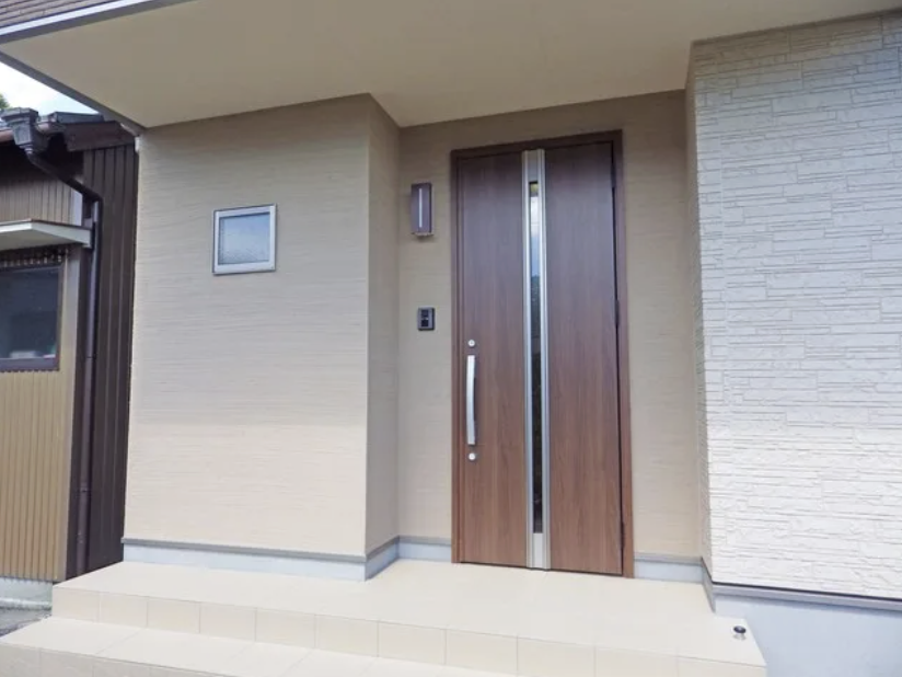 玄関ポーチは塗壁で少し柔らかい雰囲気に.