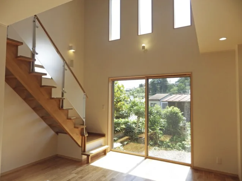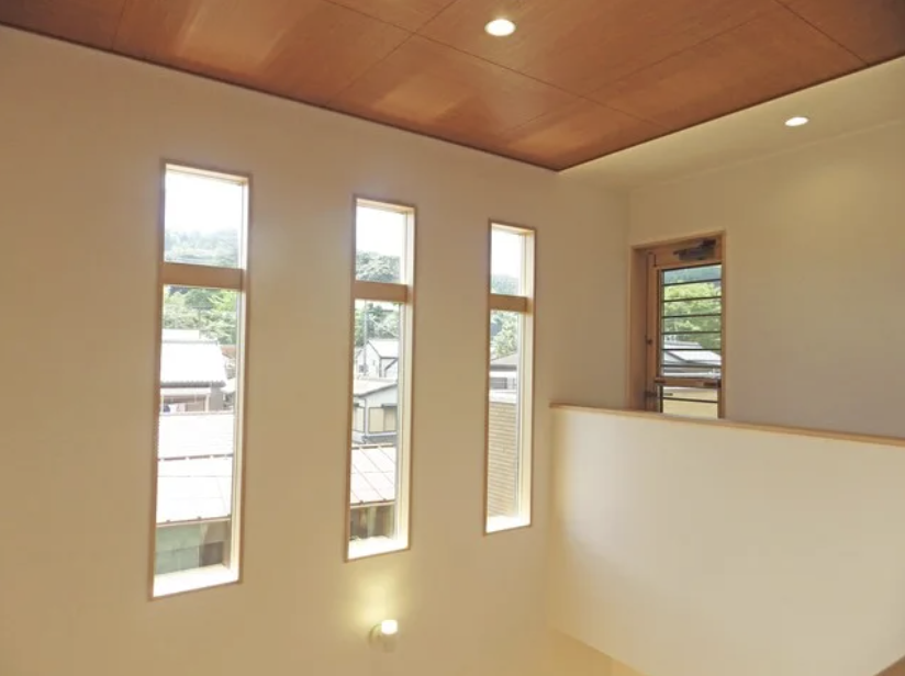 吹き抜けには光をたくさんとりこめる窓があり