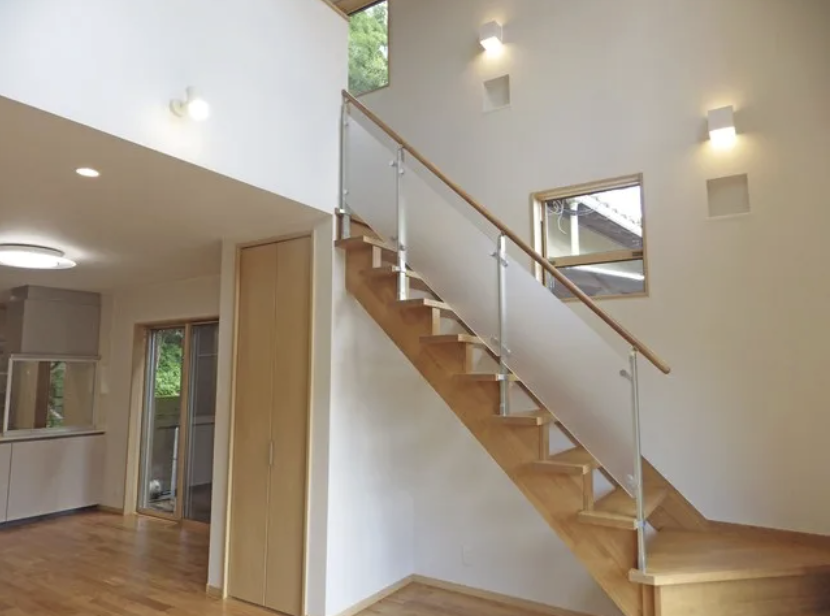 リビングから上がるオープン階段には小物を飾れるニッチを配置.