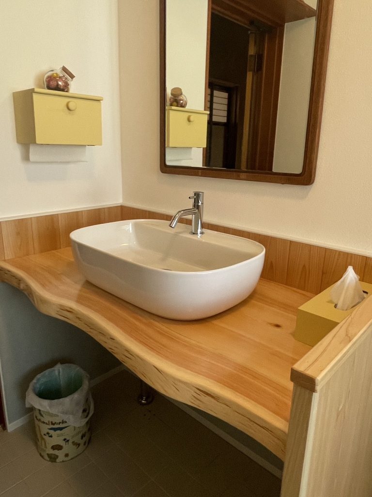 男性用トイレは撤去し そこへ造作手洗カウンターを取り付けました