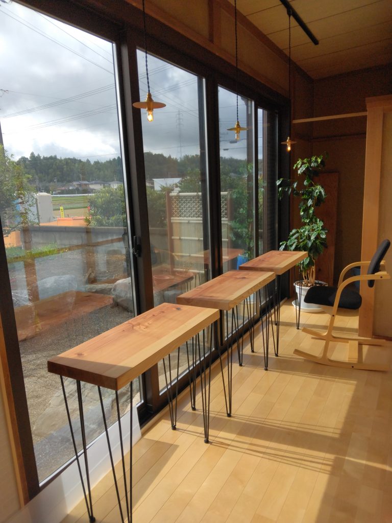 お庭に面してカウンターテーブルを並べて日当たり◎です