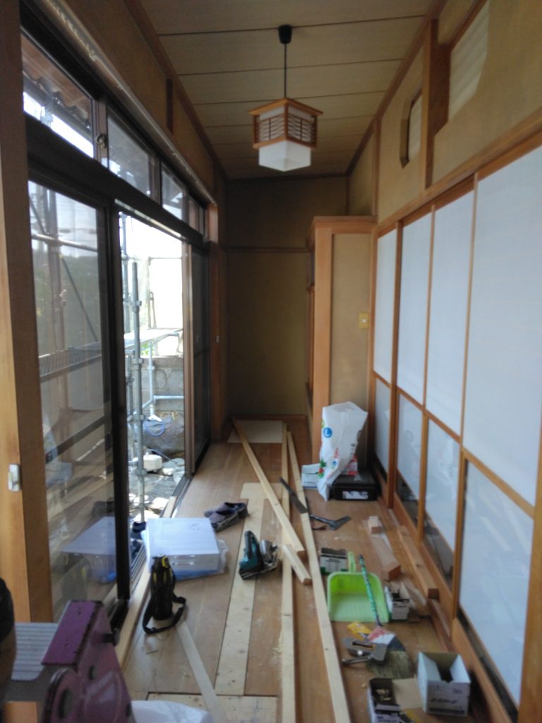 掃出し窓は断熱性能の高い窓に取り替えて床は無垢のフローリングを施工しました