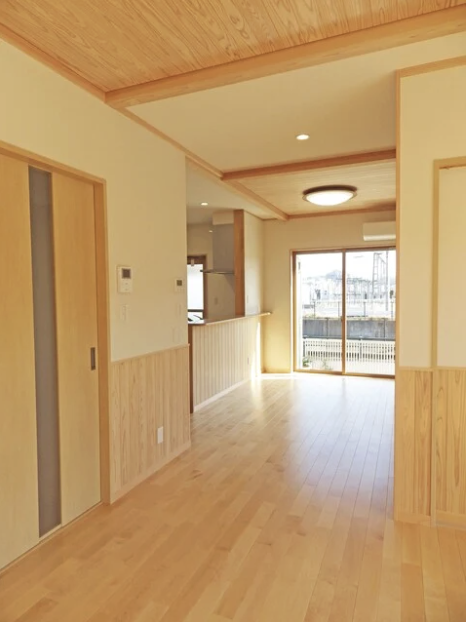 無垢のフローリングと杉板の自然素材をふんだんに使いました